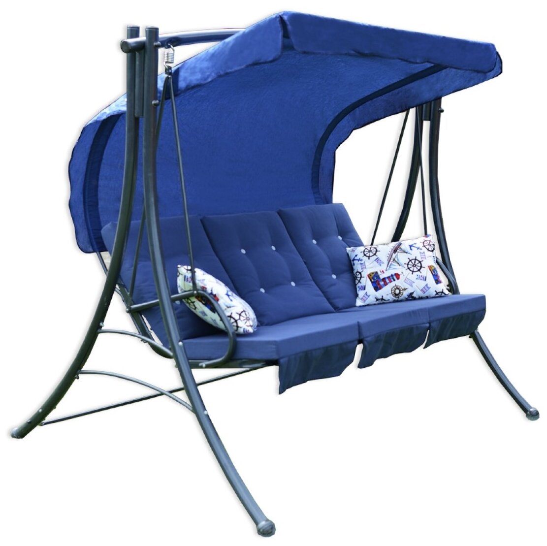 Дополнительная информация размер тента: 165х165,6 см; мягкий элемент: ткань 45% п/э – 55% хлопок, плотность 108-111г/м2, наполнитель мягкого элемента поролон+синтепон (толщина – 80мм); подушки – 2 шт; декор мягкого элемента «тафтингом»; тент: ткань с водоотталкивающей отделкой 100% п/э плотность 125-130г/м2