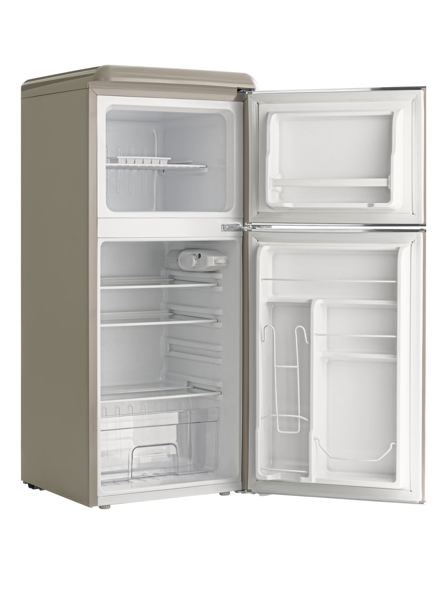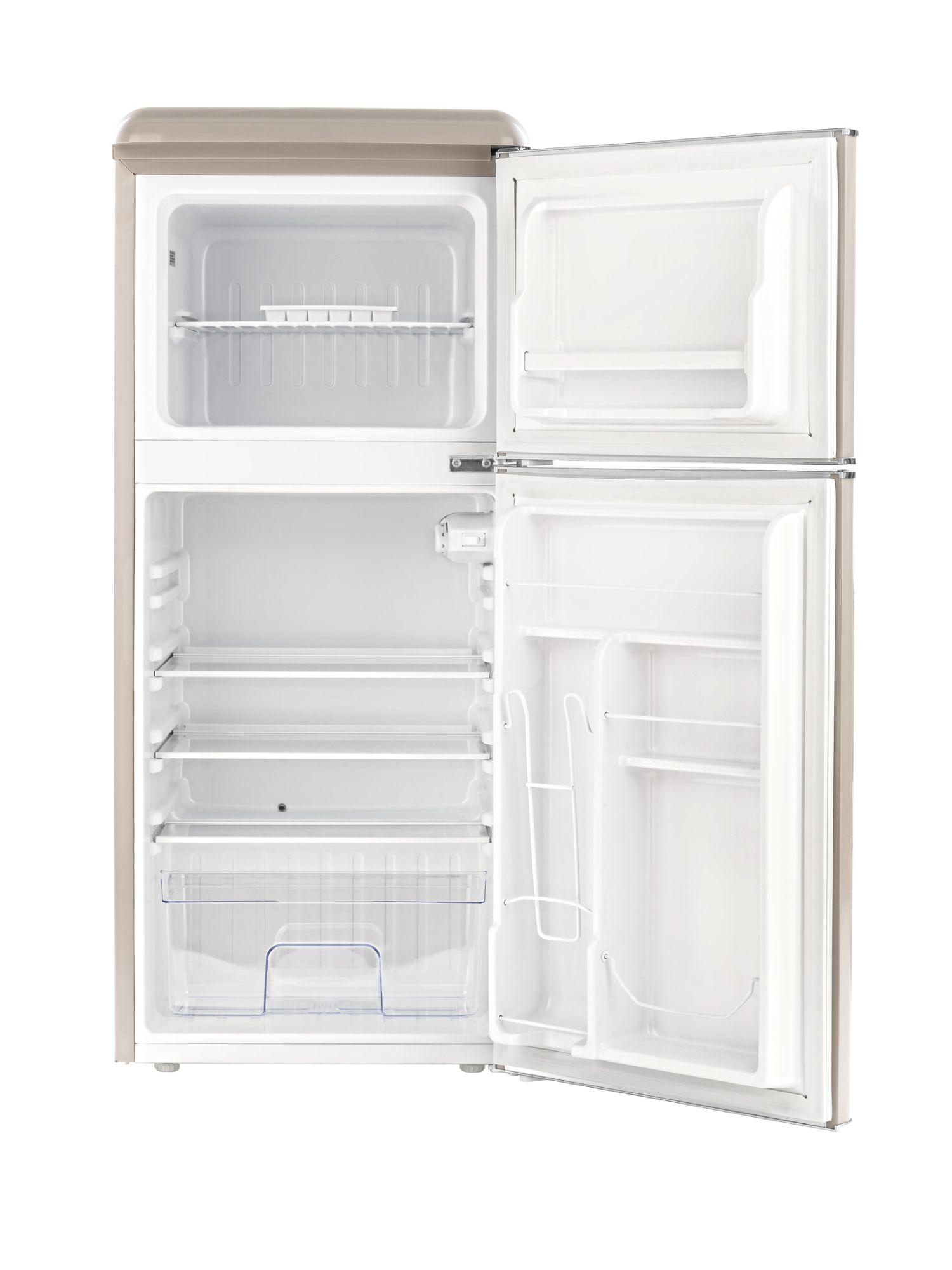 Общий объем, л - 127; Размеры, мм (ШхГхВ) - 486 x 520 x 1130; Размораживание - Капельная система; Общий объем холодильной камеры, л - 89; Класс энергопотребления - A+; Общий объем морозильной камеры, л - 38; Макс. уровень шума, дБ - 43; Количество камер - 2; Климатический класс - SN-ST +10°C / +38°C; Открывание дверей - Вправо; Тип - Холодильник; Цвет - Светло-бежевый,светло-серый,хром; Годовое по