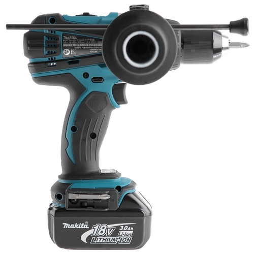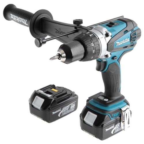 Подробная комплектация два аккумулятора, зарядное устройство, дополнительная рукоятка, ограничитель глубины сверления, бита, кейс