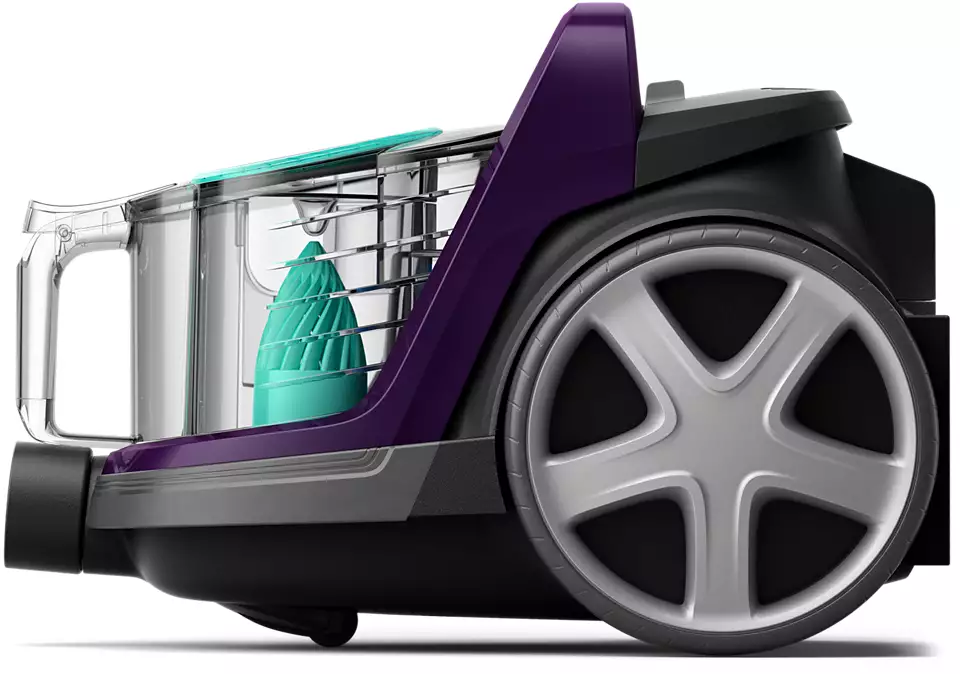 Стандартная насадка - Насадка TriActive; Цвет - Фиолетовый; Размеры изделия (ДхШхВ) - 412 x 280 x 280 миллиметра; Вес изделия - 5 кг; Уровень интенсивности звука - 72-82 дБ; Входная мощность (макс) - 1900 Вт; Мощность всасывания (макс.) - 410 Вт; Вместительность пылесборника - 1,5 л; Радиус действия - 9 м;