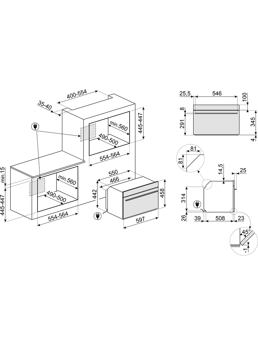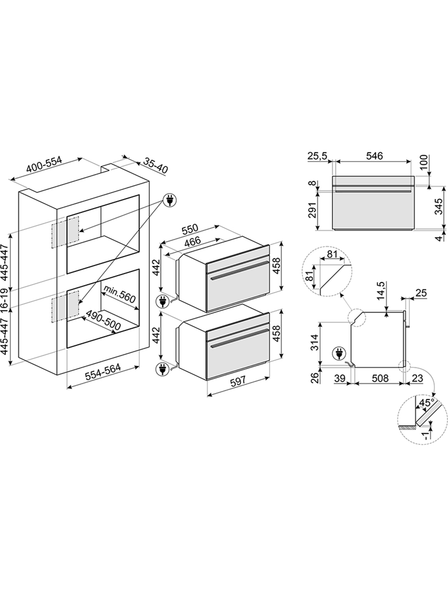 Микроволновая печь встраиваемая Smeg SO4101M0B3, черный
