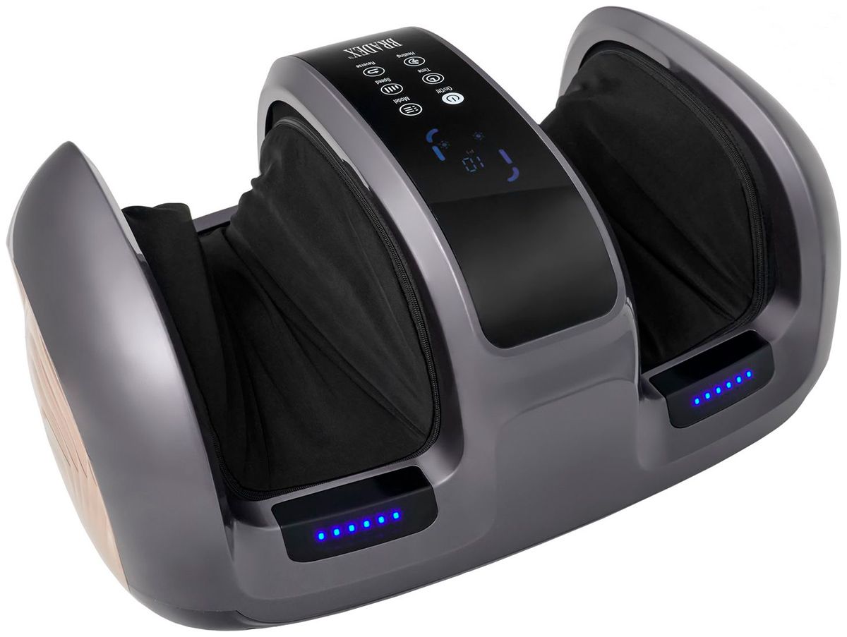 Тип - Массажер электрический; Цвет - Серый; Вид массажа - Разминание,Вибрационный,Роликовый; Зоны массажа - Ноги; Особенности массажного аппарата - Ручные программы,Пульт ДУ,Таймер,Съемные части,Подогрев; Материал корпуса - ABS пластик; Количество программ/режимов - 3; Вид питания - От сети 220В; Мощность массажера, Вт - 35; Напряжение, В - 220; Упаковка - Картонная коробка; Комплектация - Массаже