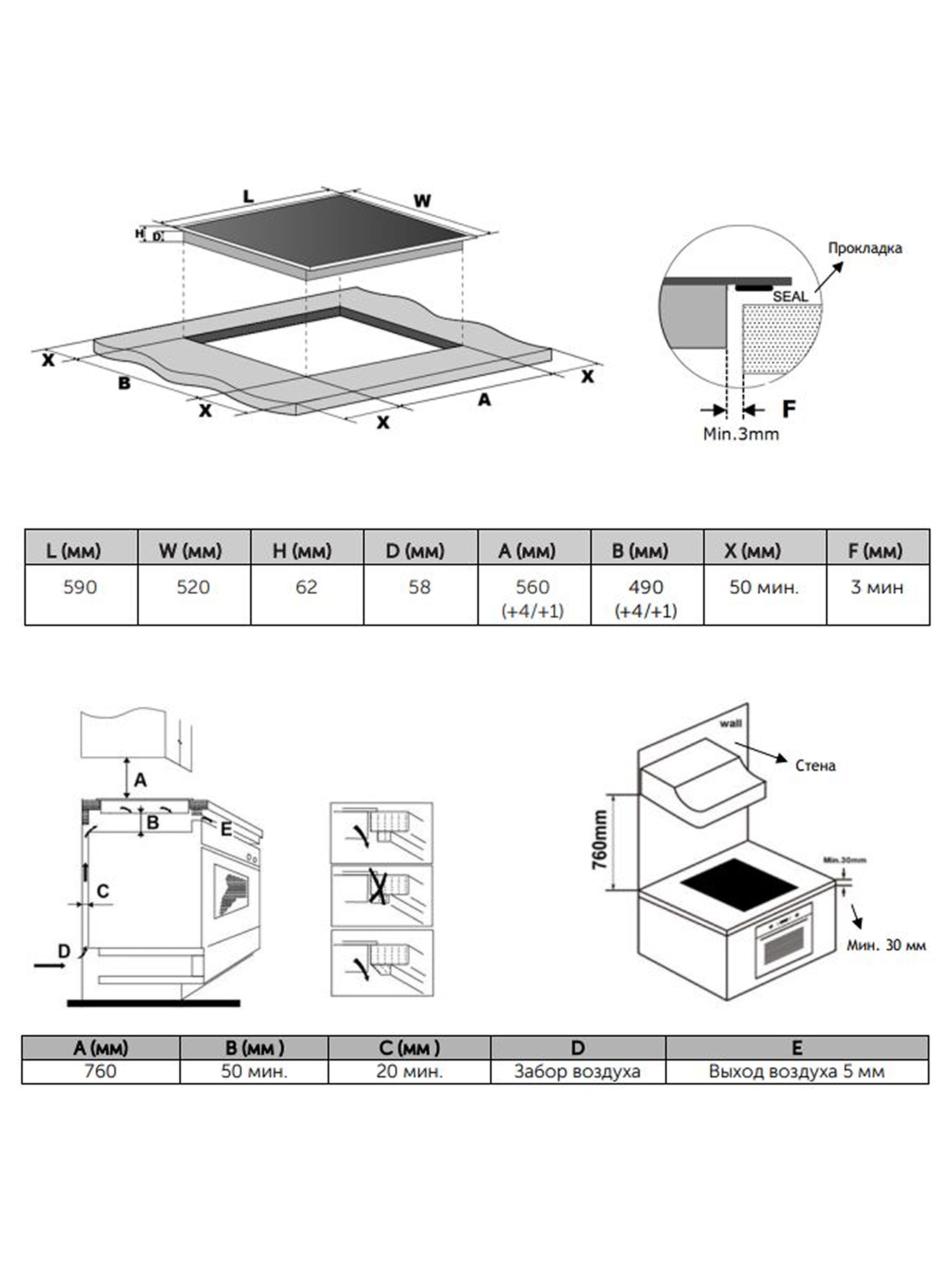 Тип панели (плиты) - Индукционная; Количество конфорок - 4; Материал рабочей поверхности панели - Стеклокерамика; Конструкция панели - Независимая; Индикация - Выбранная мощность,Остаточное тепло,Режим работы; Тип управления - Сенсорное; Тип - Варочная панель; Цвет - Черный,темно-серый; Мощность варочной панели, Вт - 7400; Ширина, см - 59; Глубина, см - 52; Размеры ниши для встраивания панели, мм