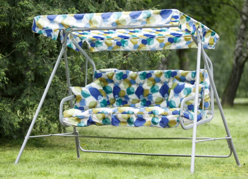 Максимальная нагрузка - 180 кг; Количество мест - 3; Материал каркаса - металл; Диаметр трубы каркаса - 32 мм; Полимерное покрытие - есть; Каркас сиденья - мягкое полотно; Форма ножек - прямая; В комплекте - матрас, подушки; Размеры качелей (ШxВxГ) - 228 x 144.50 x 121 см; Размеры сиденья (ШxГ) - 136 x 67 см; Размеры спинки (ШxВ) - 136 x 37 см; Вес - 26.8 кг;